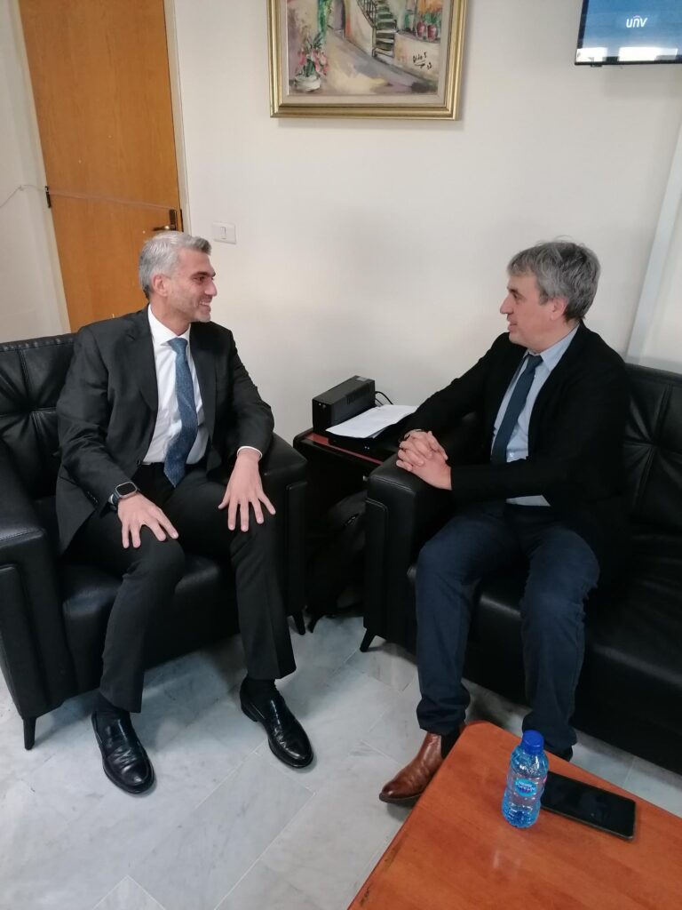 Furthermore, in the afternoon, Mr. Canals-Molina held a meeting with the Ambassador of Spain to Lebanon, His Excellency the Ambassador Jesús I. Santos Aguado. During the meeting, the Secretary-General presented the organization’s general activities, with a particular focus on its work in Lebanon. He listed the Lebanese municipalities that are members of the MedCities and emphasized MedCities’ special interest in Lebanon, noting that the Vice President of MedCities is also the President of the Union of Municipalities of Dannieh, Lebanon.
