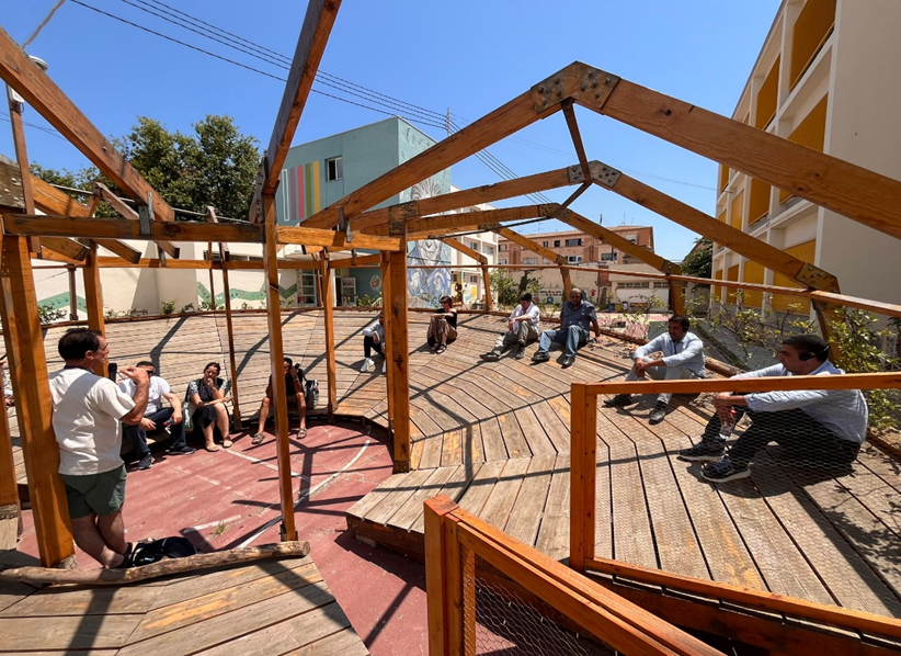 The second day began in Benicalap, a neighbourhood in northern València where the city is piloting integrated projects for urban greening, social inclusion, and climate adaptation. Guided by Las Naves – València Innovation Capital, participants visited various surrounding pilot sites, where NbS are being deployed to improve environmental quality and reduce social inequalities in one of the city’s most vulnerable districts, among them a community garden which also includes an area for socio-educational activities.