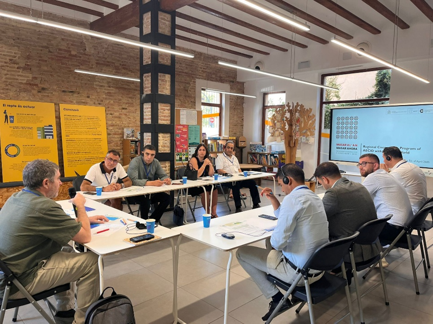 Participants also included members of the Working Group on Green and Resilient Cities, composed of municipalities committed to sustainable urban development and climate adaptation: Ein El Basha (Jordan), Agadir (Morocco), Roscovec (Albania), and Hatay and Bodrum (Turkey). The study visit served as a flagship activity within the group’s annual programme and also to support the Masar Al’an, the AECID regional cooperation programme with the Arab World. Designed to foster cooperation among Mediterranean cities, the visit provided participants with valuable insights into València’s approach to resilience and inclusion. The programme combined strategic presentations with immersive field visits to some of the city’s most emblematic urban transformation projects.
